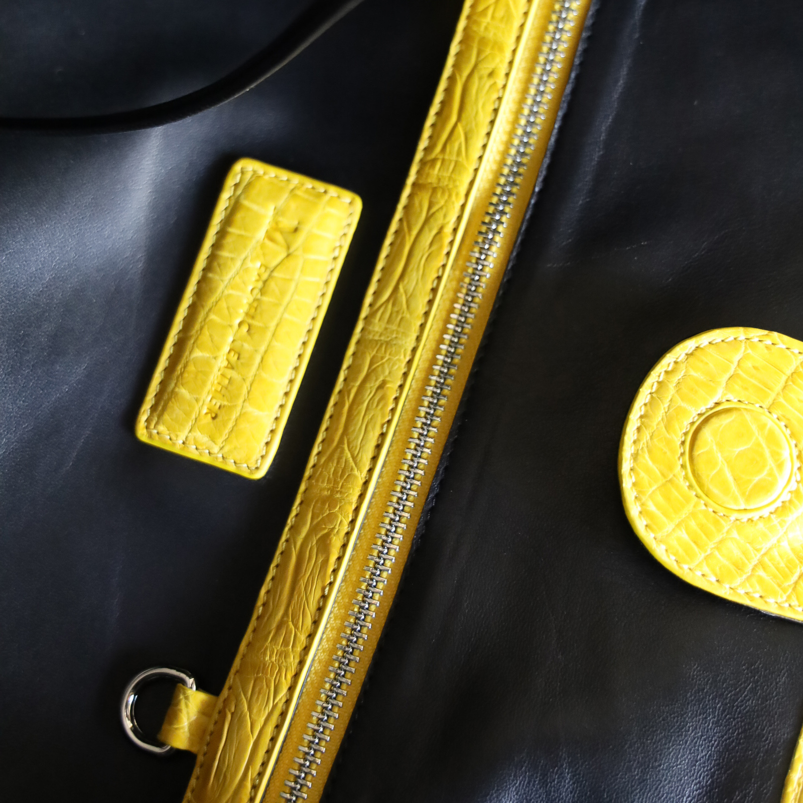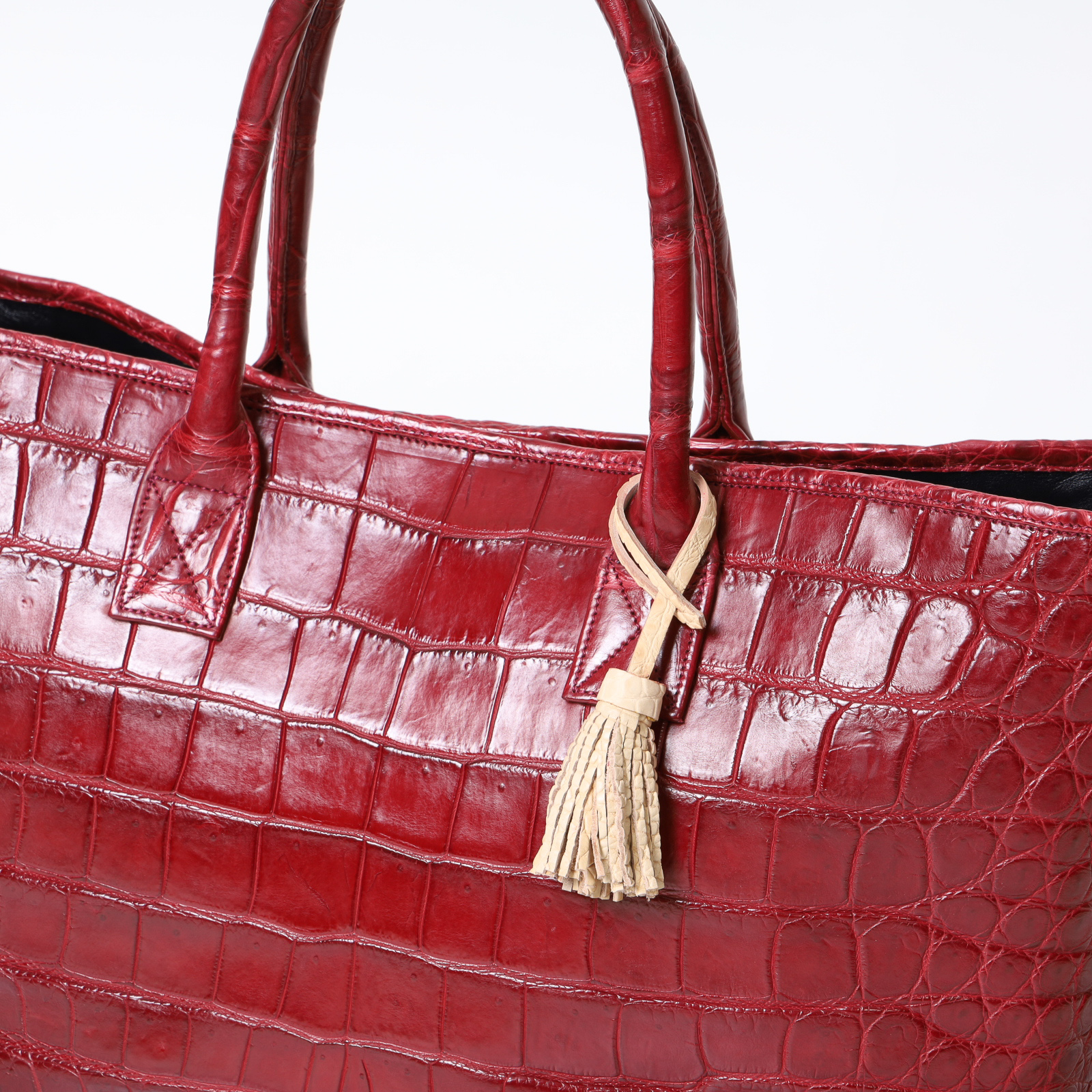 เป็นกระดุมแม่เหล็กซ่อนไว้เปิด/ปิดกระเป๋า มีเชือกผูกไว้สำหรับเปลี่ยนทรงกระเป๋า ข้างในบุด้วยหนังลูกวัว มีช่องใส่ของ 2 ด้าน เป็นซิปและธรรมดา